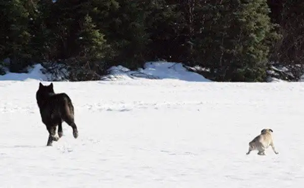 Невероятно, но собака и волк начали… играть друг с другом! Мужчине удалось заснять эту удивительную сцену.