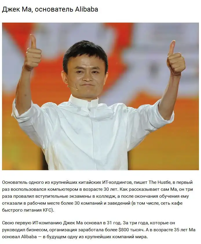 Некоторые успешные предприниматели основали свой бизнес уже после 30 лет, в то время как до этого они ничем выдающимся не отличались.