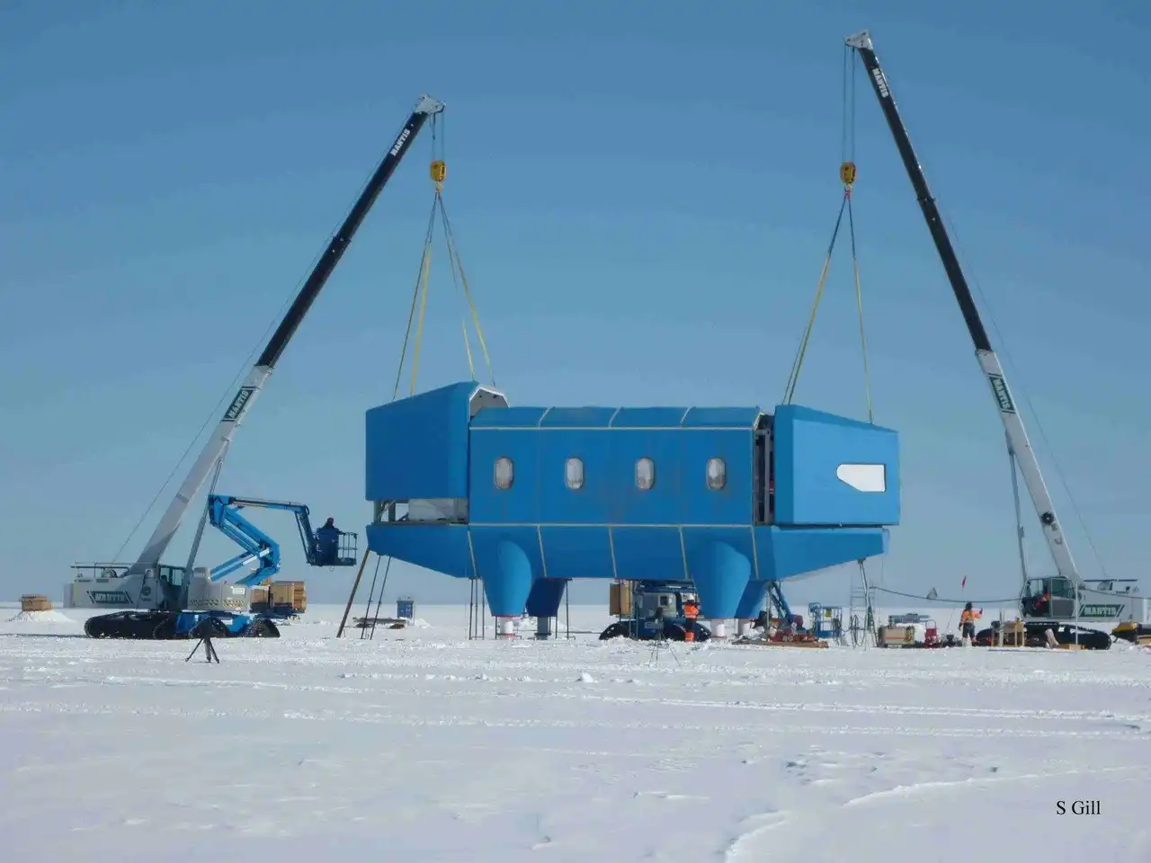 Составные части станции были доставлены в Антарктиду грузовым судном, после чего специалисты собрали модули и отбуксировали их на 9 миль от берега.
