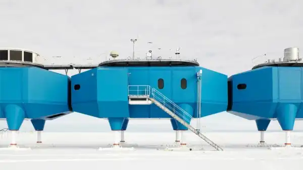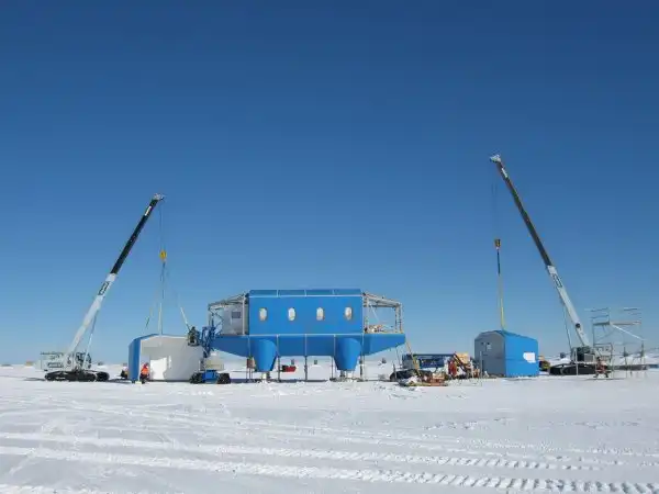 Стальные конструкции обеспечивают устойчивость станции перед воздействием антарктических ветров.