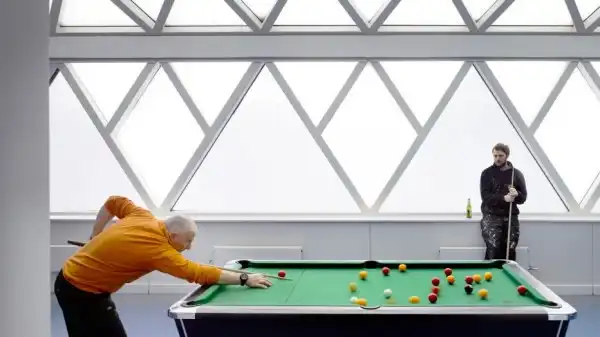 Исследователи и технические специалисты отдыхают в модуле, отведённом под социальную активность.