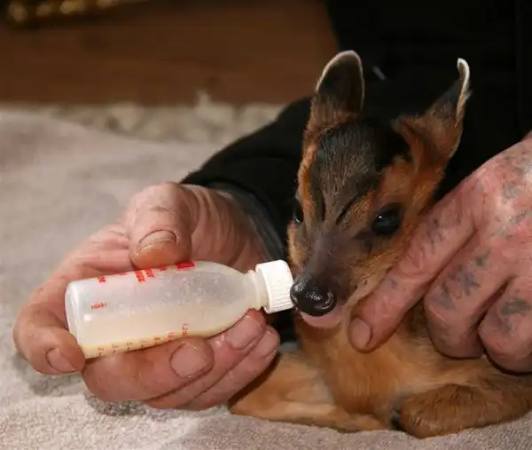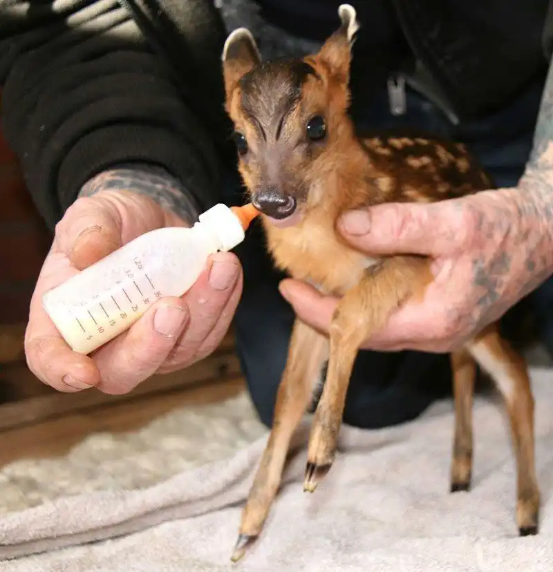 При более внимательном осмотре оказалось, что это самка оленя и она на последней стадии беременности. Более того, олененок в утробе матери был еще жив! По счастью, в машине находились хирургические инструменты, а сам волонтер был обучен азам ветеринарии. Он извлек крохотного олененка и как можно быстрее отвез его в Hillside Animal Sanctuary.