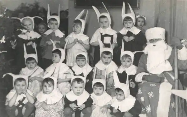Все, ну просто все без исключения мальчики хотя бы раз были «зайчиками» на новогоднем утреннике. Зайчики были самыми первыми персонажами этих самых утренников, когда те только начинали становиться традицией. Костюм зайчика в те времена был до гениальности прост: два мягких уха из ткани, набитой ватой и клочок в лучшем случае шерсти, а обычно — этой же самой ваты сзади. Для устойчивости в уши иногда вставляли проволоку. Хотя, были и «бюджетные» варианты «зайчиков» с ушами из картона.