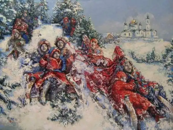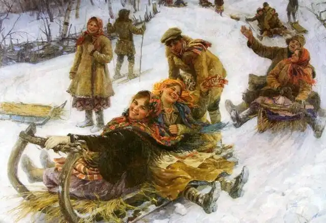 Поэтому во время зимних календарных праздников русские люди всех возрастов старались съехать с горы. Детям оживлённая энергия была нужна для роста, молодожёнам - для успешного начала совместной жизни, а старикам - для её продолжения.