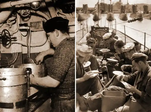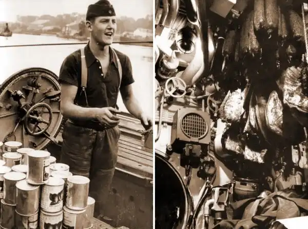Немцы великолепно снабжали продовольствием свои подводные корабли. После установления в Европе гегемонии Германии продукты на базы подлодок поставлялись из Франции, Дании, Португалии, Испании, Италии и т.д. В поход лодки брали свежее и варёное мясо, свежие овощи и фрукты, сыр, мёд, шоколад, копчёные колбасные изделия, соки, различные консервы и многое другое. Проблема была одна – в походе, в условиях плохой вентиляции и сильной влажности, свежие продукты быстро портились. В итоге подводникам приходилось сидеть на консервно-витаминной диете – чем длительнее был поход, тем хуже было с питанием.