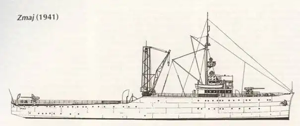 В состав югославских ВМС «Zmaj» включили в 1931 году после установки артиллерийского вооружения, поставленного чешской фирмой «Škoda» и состоявшего из двух 83,5-мм универсальных орудий и двух спаренных 40‑мм установок.