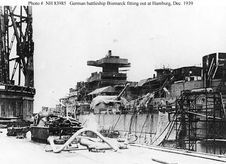 В феврале 1939 года его спустили на воду. В торжественной обстановке, в присутствии Гитлера, традиционную бутылку шампанского о борт корабля разбила Доротея фон Бисмарк, внучка знаменитого канцлера. В конце августа 1940 корабль ввели в состав флота. Командиром корабля стал капитан первого ранга Эрнст Линдеманн. К весне 1941 года «Бисмарк» был готов к боевым выходам.