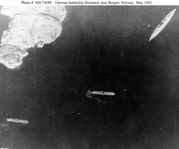Аэрофотосъемка "Бисмарка" (в правом верхнем углу снимка)