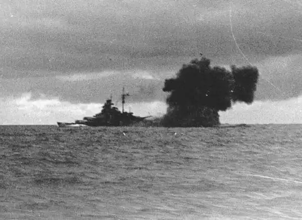 Снимок тонущего линкора с борта крейсера "Дорсетшир"