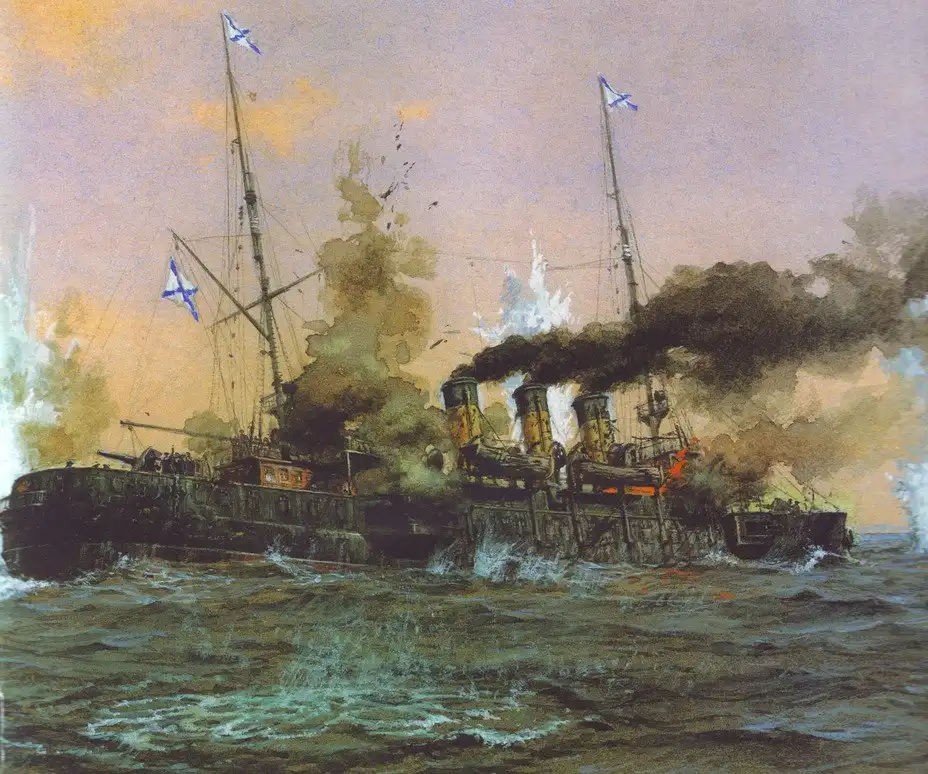Фрагмент картины «Крейсер «Светлана» в Цусимском бою».