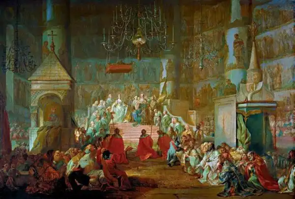 Коронация императрицы Екатерины Второй была грандиознейшим праздником. Торжества тогда длились более трёх месяцев. Во время самой коронации в Москве было роздано народу более 19 тонн серебра. На улицах стояли жаренные быки и били фонтаны из рейнского вина. Проходили маскарады с участием карликов, гигантов и шутов. Общие затраты на эту церемонию подсчитать крайне трудно, да и цифры бы там получились совсем астрономические.