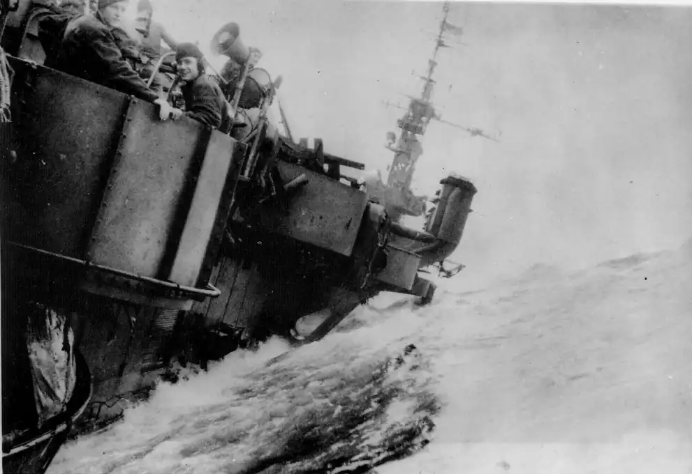 Следующий пал под ударами стихии эсминец «Hull». Во время перехода на новую позицию в ордере корабль оказался повернут бортом к ветру, который дул со скоростью 56 м/сек. без перерывов.