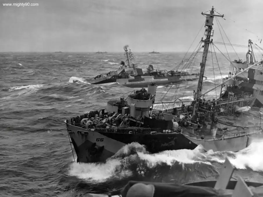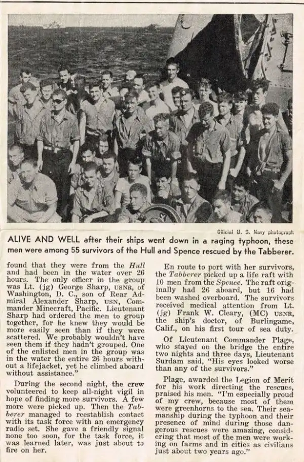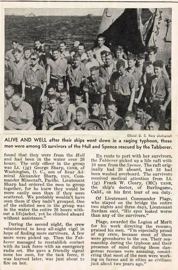 Первой жертвой сил природы стал эсминец «Spence». В его цистернах оставалось всего лишь 90 тонн топлива, то есть около 15% запаса. Эсминец был вынужден приблизиться к основным силам для дозаправки и таким образом оказался близ центра тайфуна.