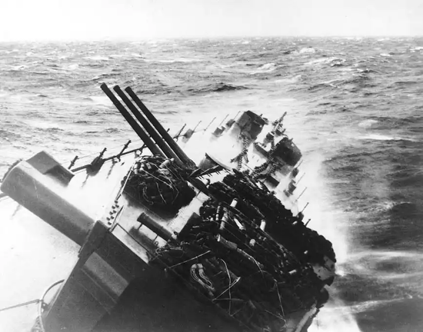 Из базы метеослужбы в Пёрл-Харборе на корабли флота поступило штормовое предупреждение, но командование отнеслось к нему немного самонадеянно и посчитало, что линкоры, крейсера, авианосцы и эсминцы смогут преодолеть тайфун.