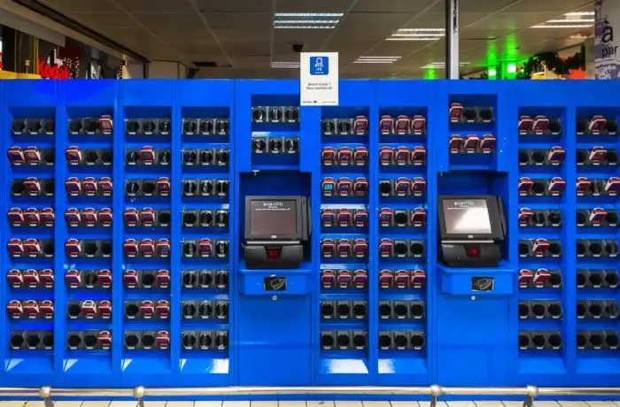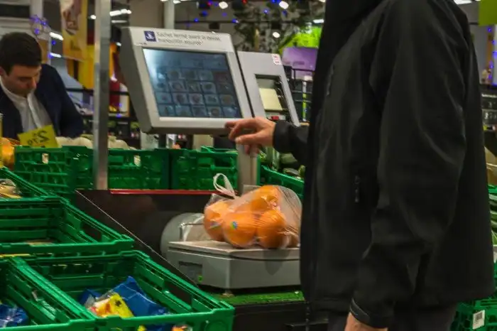 Перед входом в торговый зал расположен стенд с электронными сканерами. Насколько я понял, можно самому сканировать то, что вы покапаете, а на выходе не выгружать все продукты на ленту, а просто отдать сканер и рассчитаться: