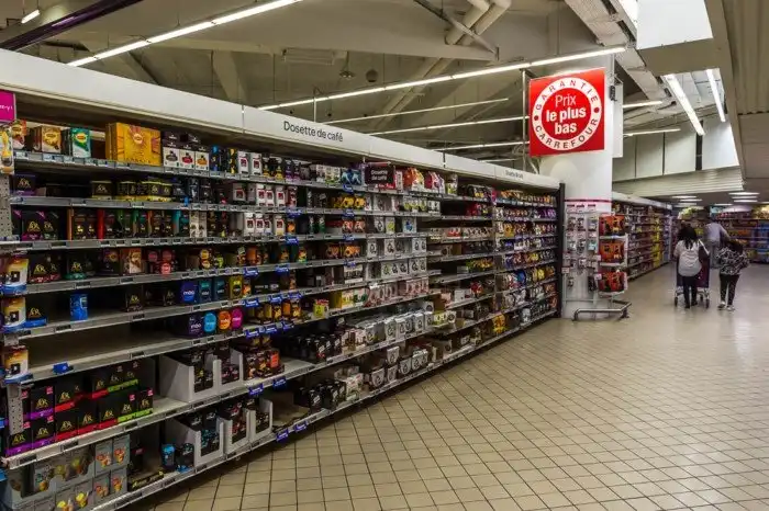Большинство ценников в магазине электронные и меняются, по-видимому, централизованно с пульта:
