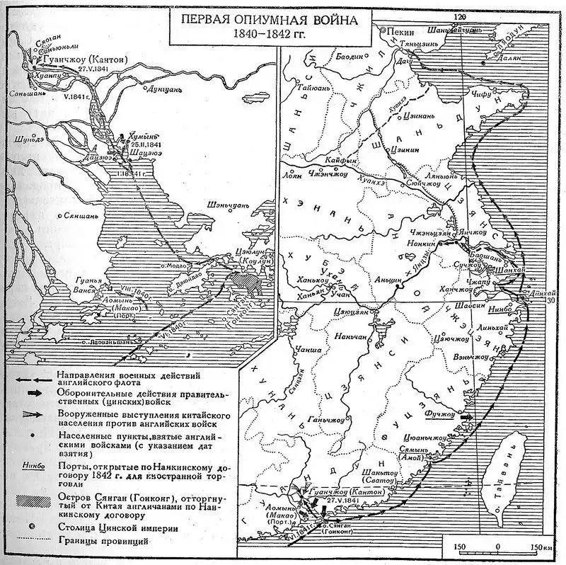 Английский флот также направился к Кантону. В Динхае три четверти оставленного оккупантами гарнизона были к тому времени небоеспособны из-за болезней. Это, однако, не помешало упорным англичанам провести рекогносцировку Янцзы, пройдя почти сотню километров вверх по течению реки. Удобный путь в глубь Китая был открыт, и это сыграло решающую роль в дальнейшем ходе войны.