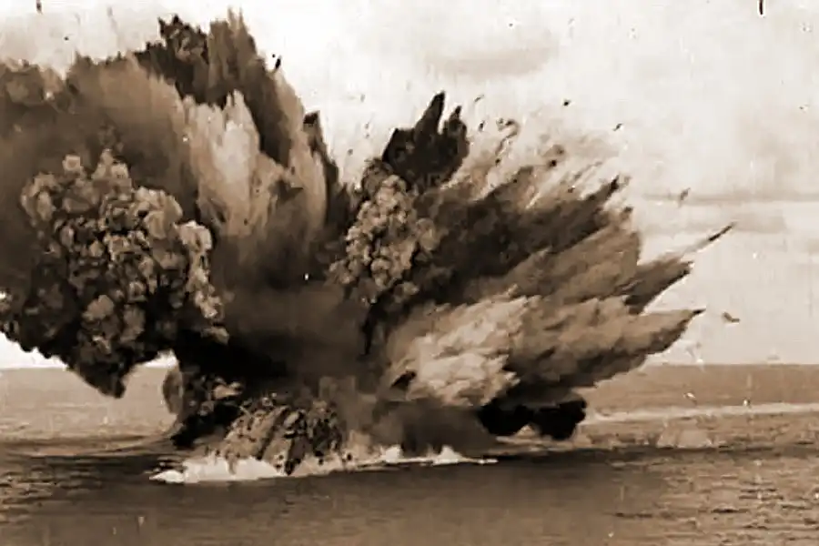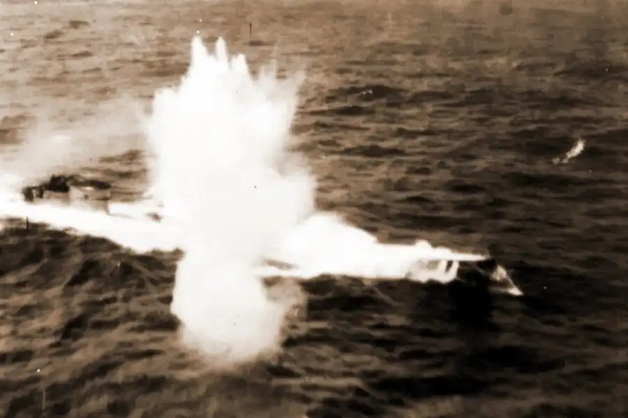 Снимок запечатлел прямое попадание в лодку U 200 бомбы,