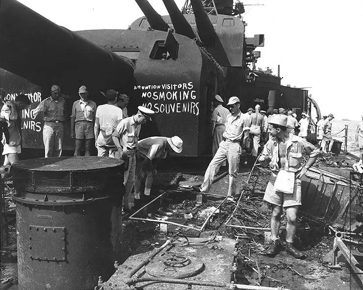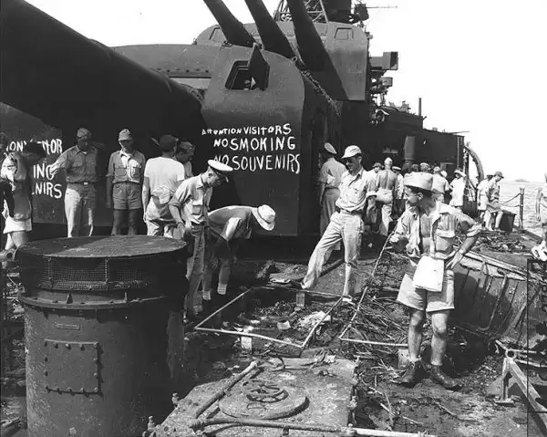 Крейсер Pensacola после проведения ядерных испытаний, июль 1946 года