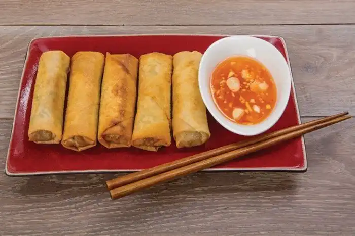 Используя ложку, опустите спринг-ролл в масло — если он начинает поджариваться, значит масло нагрелось до нужной температуры.