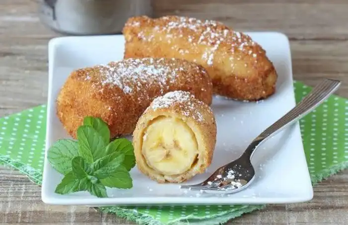 В китайской кухне существует популярный по всему миру десерт — бананы в кляре. В этом блюде традиционно используют рисовую муку. Так тесто получается очень нежным.