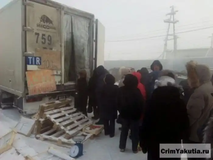 Жители Якутска откликнулись на призыв о помощи, в которой нуждался дальнобойщик, везший хурму из Киргизии. Из-за поломки электроники, рефрижератор не мог поддерживать необходимую температуру и весь груз замерз. Заказчик отказался от такого груза, а в мессенджере Whatsapp появилось следующее сообщение: «По ул. Труда стоит фура продает 5 сортов хурмы, правда замороженной, но очень вкусной 100 рублей кг. Сам приезжий по дороге сломалась машина все замерзло, оптовка отказалась брать. Жалко мужика живет в машине греется пушкой домой уехать не может. Давайте поможем мужику продать товар». Горожане откликнулись на призыв о помощи, и у фуры выстроилась большая очередь из желающих купить хурму.