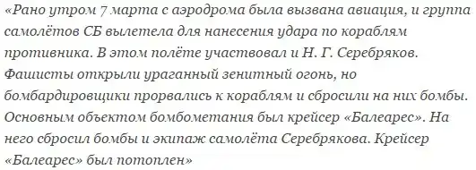 Дополнительную информацию об участии советских лётчиков в налёте на испанские корабли можно найти на сайте выпускников Борисоглебского высшего военного авиационного училища. В частности, на интернет-странице http://bvvaul.ru/profiles/1261.php, посвящённой биографии генерал-лейтенанта Николая Гавриловича Серебрякова, можно найти такие слова:
