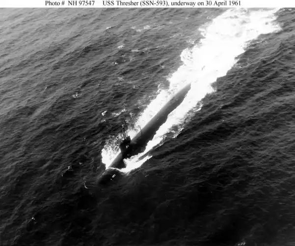 ...Утром 9 апреля 1963 года погода стояла безветренная, на небе — ни облачка. Водная гладь Атлантического океана серебрилась в лучах солнца. Подводная лодка, выходившая из гавани Портсмута, напоминала гигантскую хищную рыбину, всплывшую на поверхность. Размеры громадины впечатляли. Субмарину с регистрационным номером «SSN-593» нарекли «Трэшер».