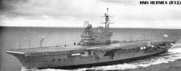 «Гермес» являлся одним из четырёх лёгких авианосцев типа «Центавр». Всего британцы планировали построить восемь таких кораблей, но после окончания Второй мировой войны проект сократили до четырёх авианосцев из-за финансовых трудностей. Три из них были приняты на вооружение Королевских ВМС в 1953–1954 годах, а «Гермес» – в 1959 году. Первые три авианосца были пущены на слом соответственно в 1965, 1972 и 1984 годах. «Гермес» прослужил 28 лет, успев побывать флагманом британских военно-морских сил в Южной Атлантике во время войны за Фолклендские острова.