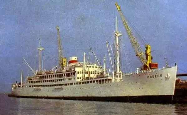 После окончания Великой Отечественной войны в состав торгового флота СССР вошел ряд немецких судов, восстановленных на верфях Германии. Среди них был и лайнер «Иберия», получивший в советском флоте название «Победа». Это был крупный теплоход, рассчитанный на перевозку 340 пассажиров и 4000 тонн грузов. Во время восстановительного ремонта его вместимость довели до 600 пассажиро-мест.