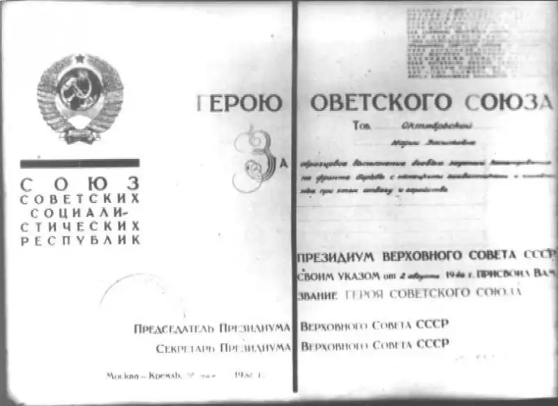 В боях за Родину погиб мой муж - полковой комиссар Октябрьский Илья Федотович. За его смерть, за смерть всех советских людей, замученных фашистскими варварами, хочу отомстить фашистским собакам, для чего внесла в госбанк на построение танка все свои сбережения - 50 000 рублей. Танк прошу назвать “Боевая подруга” и направить меня на фронт в качестве водителя этого танка. Имею специальность шофера, отлично владею пулеметом, являюсь Ворошиловским стрелком…