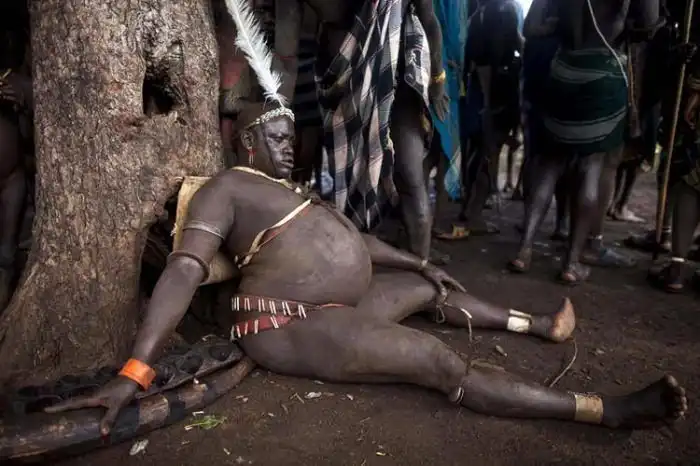 У эфиопских племен долины Омо, красота мужчины меряется размером его живота. Тамошние молодые и неженатые мужики употребляют в пищу только жирное молоко и кровь коров и сидят в хижине, чтобы мамон вырос побольше.