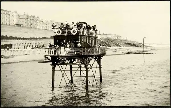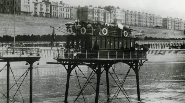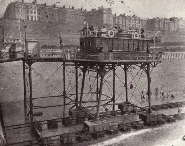 Кроме того, желающие во время путешествия могли выйти на верхнюю и нижнюю палубы и полюбоваться плещущими внизу волнами. «Пионер» был рассчитан на полторы сотни пассажиров. Правда, уже через несколько дней в результате сильнейшего шторма гигантская паукообразная конструкция рухнула в море. После ремонта и восстановления «длинноногий папочка» вернулся в строй и продолжил перевозить пассажиров вплоть до 1900 года. Перспективы по его дальнейшему функционированию прервали планы, связанные со строительством волноломов. Идея переноса рельсов в связи с этой затеей, категорически не понравилась Магнусу Уолку, так как это требовало серьезных денежных затрат и он не взялся за этот проект. В результате, уникальный морской трамвай закончил свое существование рядом с причалом в Брайтоне, от которого и отходил в свои необычные рейсы. Гениальная конструкция стояла и ржавела, пока, наконец, ее не разобрали на металлолом. Так же поступили и с рельсами. И теперь только шпалы из бетона, обнажающиеся во время отлива становятся ярким напоминанием об уникальнейшей электрической железной дороге на Земле.