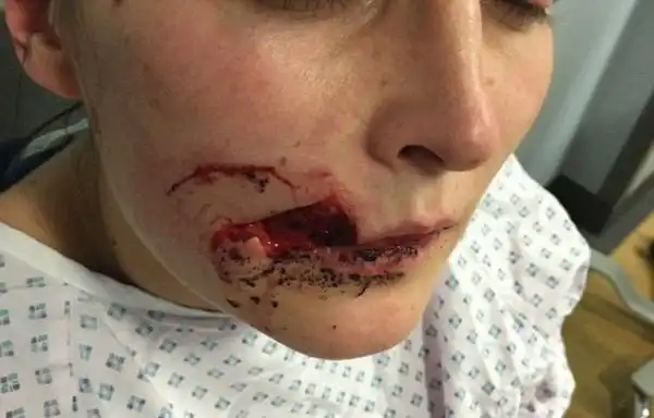 26-летняя Кейт Нильд осталась без куска щеки после того, как попросила агрессивно настроенного парня подшофе покинуть дом ее друга, где проходила вечеринка. По словам британки, пьяный незнакомец бросился на нее и зубами вырвал добротную часть ее лица.