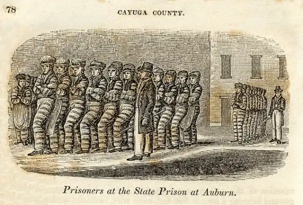 Пройдя долгий путь от средневековья, страх общества перед полосками воплотился в появлении полосатой униформы для заключенных.Полосатая униформа появилась в США в 19-ом веке вместе с возникновением двух тюремных систем. Пенсильванская система была придумана квакерами и поощряла раскаяние путем принуждения заключенных жить и работать в одиночных камерах. Обернская система организовала специальные отрасли промышленности, разрешая заключенным работать коллективно в течение дня при строгих условиях: им не позволяли говорить друг с другом, каждое их движение жестко регламентировалось, волосы были одинаково коротко подстрижены, и они носили полосатую униформу.