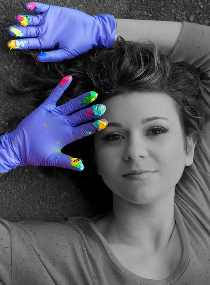 Надевая хирургические перчатки, Айрис Скотт (Iris Scott) использует пальцы как кисти, при этом все еще рисуя маслом.