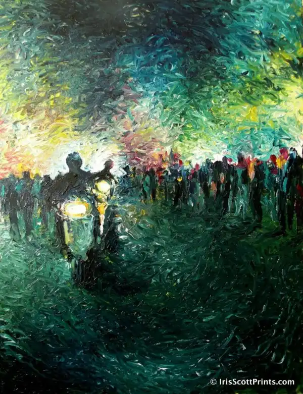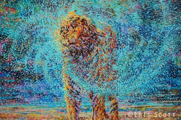 Долгое время, Айрис Скотт (Iris Scott) в своих работах использовала традиционную кисть. Как говорит сама художница, идея создавать картины пальцами, возникла у нее случайно.