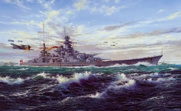 В одну из ноябрьских ночей сигнальщики сообщили вахтенному офицеру, что на берегу, напротив места стоянки корабля, наблюдались "кратковременные вспышки света" . Вахтенный офицер, будучи не дурак, сразу сообразил, что это какой-то норвежец сигналит британским субмаринам. Тут же сыграли алярму! Одуревшая от постоянной боевой готовности команда разбежалась по постам. Вся 235-метровая туша линкора напряглась в готовности победить или умереть за фюрера. По приказу выдернутого из люли, а потому красноглазого и злого Хинтце, подали питание на башни главного калибра и прочие артиллерийские установки. В машине главмех аврально готовил к вводу все котлы. На сушу шлюпками отправили группу захвата численностью в 200 человек. Короче, все изготовились. Потом капитан цур зее Фриц Юлиус Хинтце приказал ослепить берег тремя боевыми полутораметровыми прожекторами.