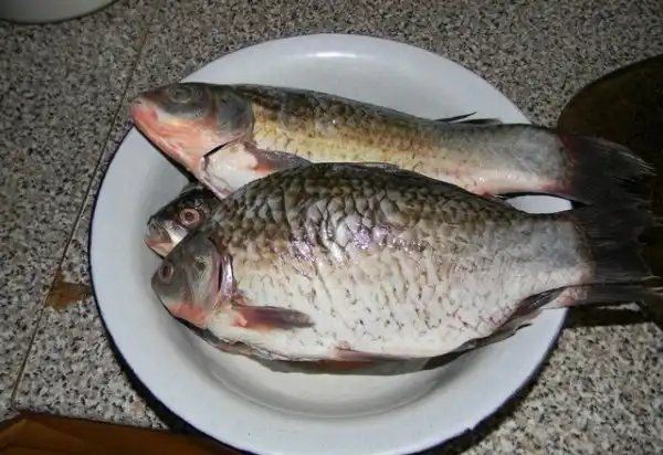 Вот он, карась. На фото 1 шт., но жарить будем 4 шт.