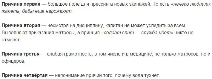 К слову, в торговом флоте за каждого опытного матроса держались, поэтому принимали меры к тому, чтобы сократить смертность экипажей. Капитан и владельцы коммерческих кораблей в портах покупали воду для своих экипажей по возможности болотную, так как вода из глубоких торфяных болот (не путать со стоячими, «гнилыми») обладала антисептическими свойствами. И хранилась она вдвое-втрое дольше обычной, речной. Военным морякам о такой роскоши, как правило, приходилось только мечтать.