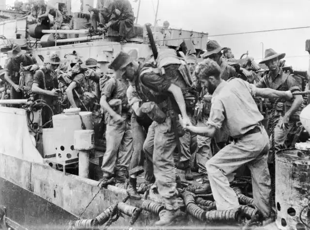 Высадка пехотинцев 6-й австралийской дивизии с корвета