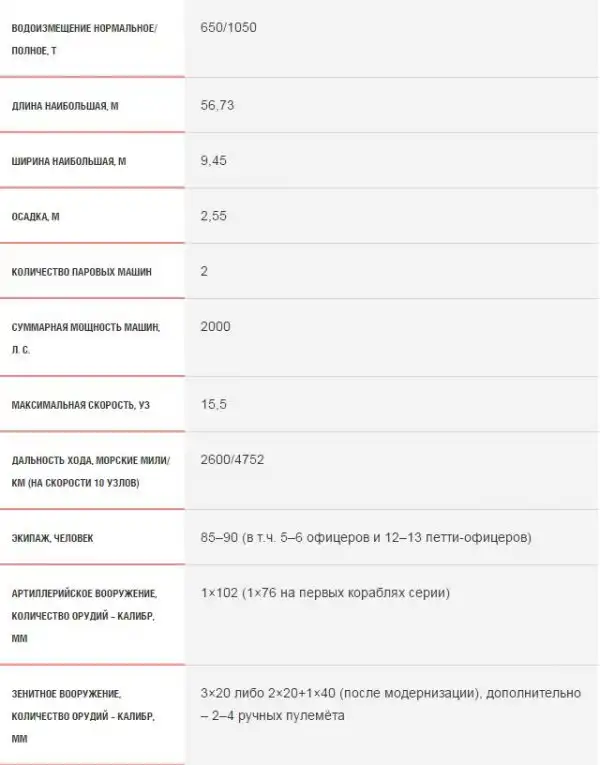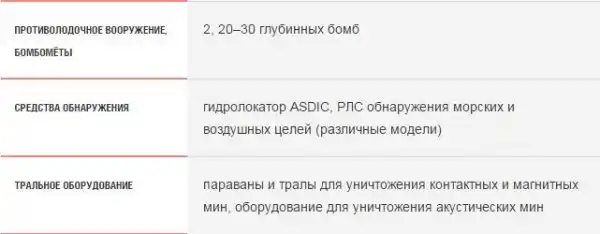 Основные тактико-технические характеристики корветов/тральщиков типа «Bathurst»