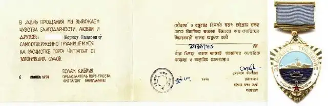 принимавших участие в разминировании Читтагонга (1972 г.)