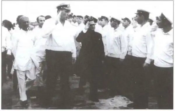 Президент Бангладеш Чоудри обходит строй советских моряков,