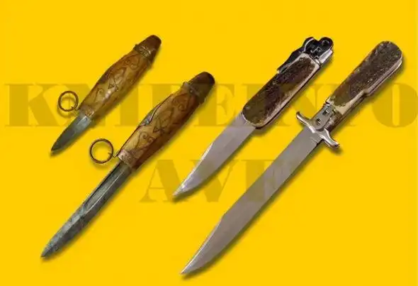 Впоследствии их конструкция была доработана – появилась удобная защелка – фиксатор, складная гарда, а вместо кинжального клинка с обоюдоострой заточкой стал использоваться ножевой – с односторонней или полуторной заточкой. В таком виде этот оригинальный нож и дошел до наших дней.
