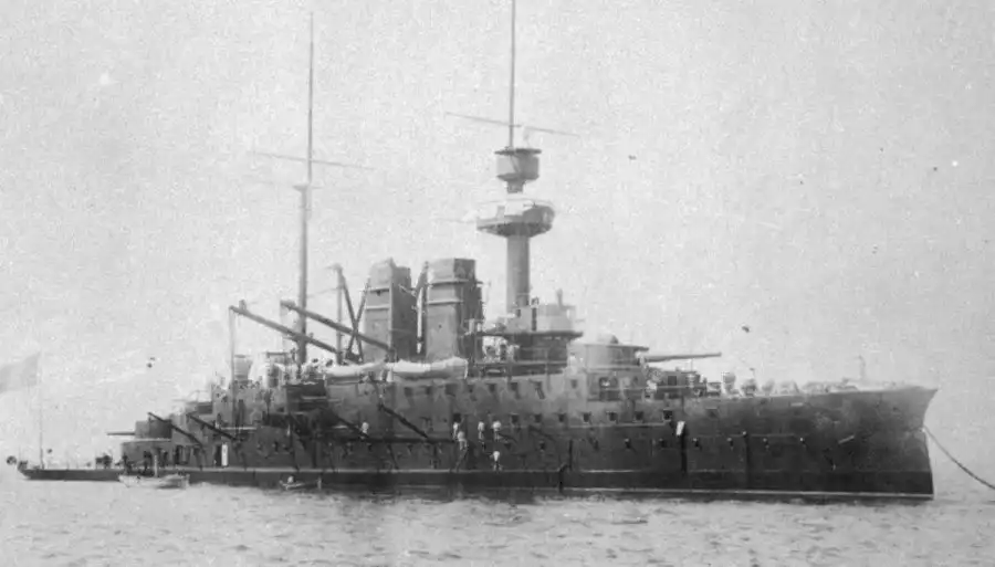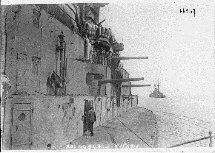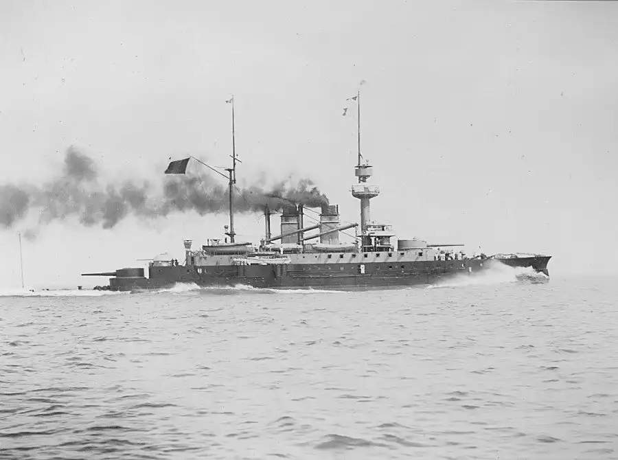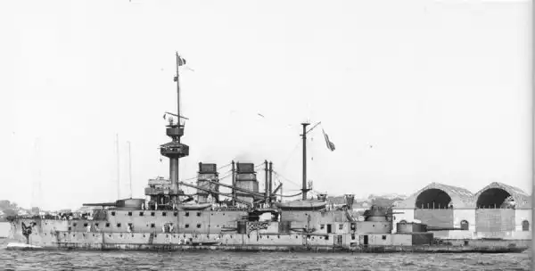 "Анри IV" в открытом море; хорошо виден очень низкий надводный борт в кормовой части.