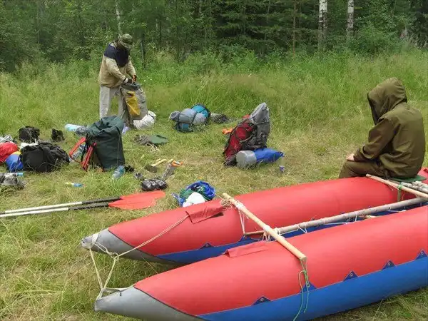 Около 7 утра. Приготовления: катамаран, байдарка, рюкзаки, еда....