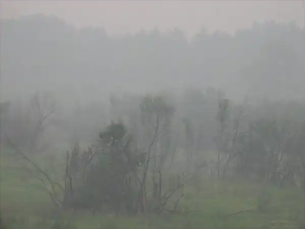 По дороге везде сплошной дым, от лесных пожаров.