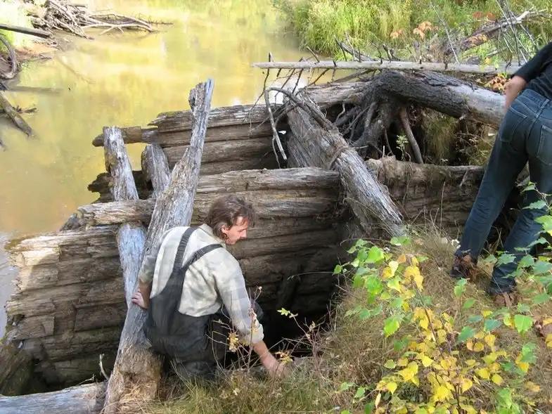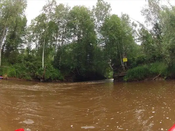 На второй день сплава приехали в Красный Яр, где живёт Геннадий, один в тайге. Иногда завозят к нему продукты из Катайги. Здесь есть шлюз Красный Яр.