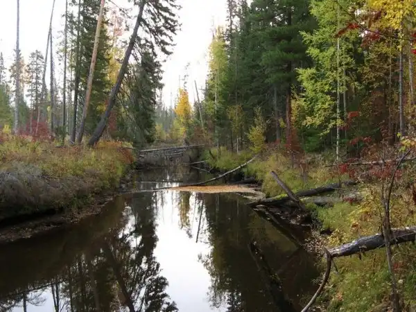 По пути довольно часто встречаются завалы деревьв. Надо пилить или по тайге обходить их.